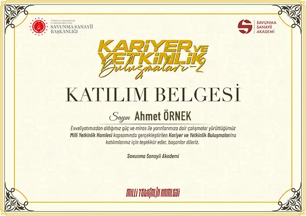 Savunma sanayiinin tüm alanlarında nitelikli ve yetkin insan gücü yetiştirilmesi amacıyla başlatılan Milli Yetkinlik Hamlesi kapsamında çevrim içi platform üzerinden gerçekleşecek programda, savunma sanayiinde kariyer ve yetkinlik konularında katılımcıları bilgilendirmek ve ilham verecek konuşmalar ile kendilerini geliştirme yönünde farkındalık kazandırmak amaçlanmaktadır.